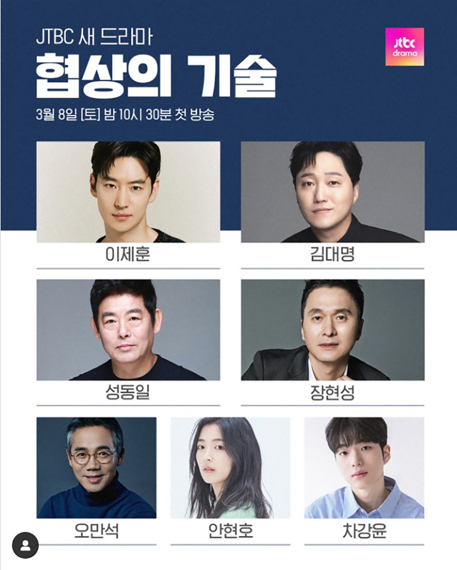JTBC에서 방영될 예정인 <협상의 기술>은 대한민국 기업 인수합병(M&A) 업계를 배경으로 한 오피스 드라마다. 치열한 협상의 세계에서 각기 다른 신념을 가진 주인공들이 비즈니스 세계의 권력 싸움 속에서 성장해가는 과정을 그린다.