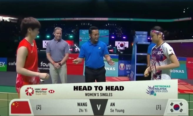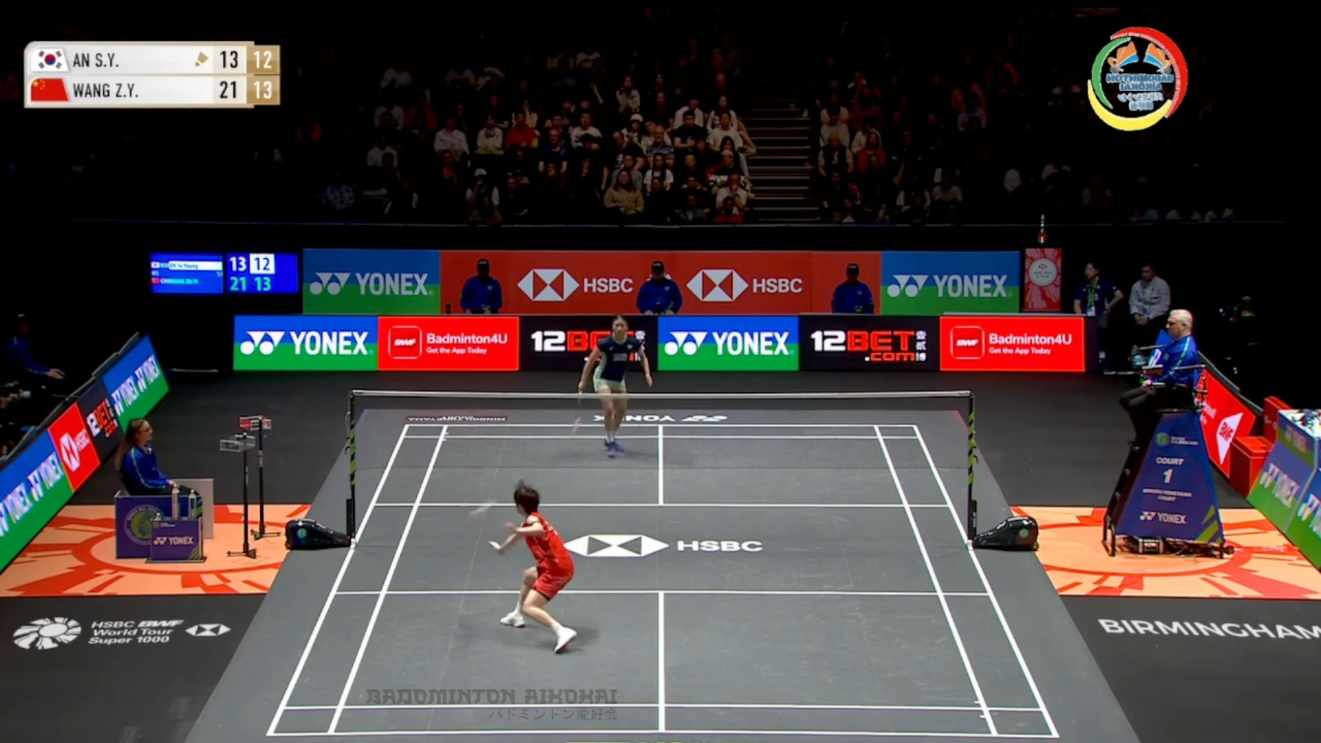 - 경기 초반 왕즈이의 강한 스매시와 빠른 경기 운영에 밀려 13-21로 첫 세트 패배