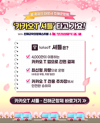 군항제 기간에는 많은 인파가 몰려 자가용 이용시 극심한 교통 체증과 주차난을 겪을 수 있습니다. 이럴때 서울, 부산, 대구 등 주요 도시에서 출발하는 카카오T 셔틀버스를 이용하면 편리하게 축제장까지 이동할 수 있습니다.