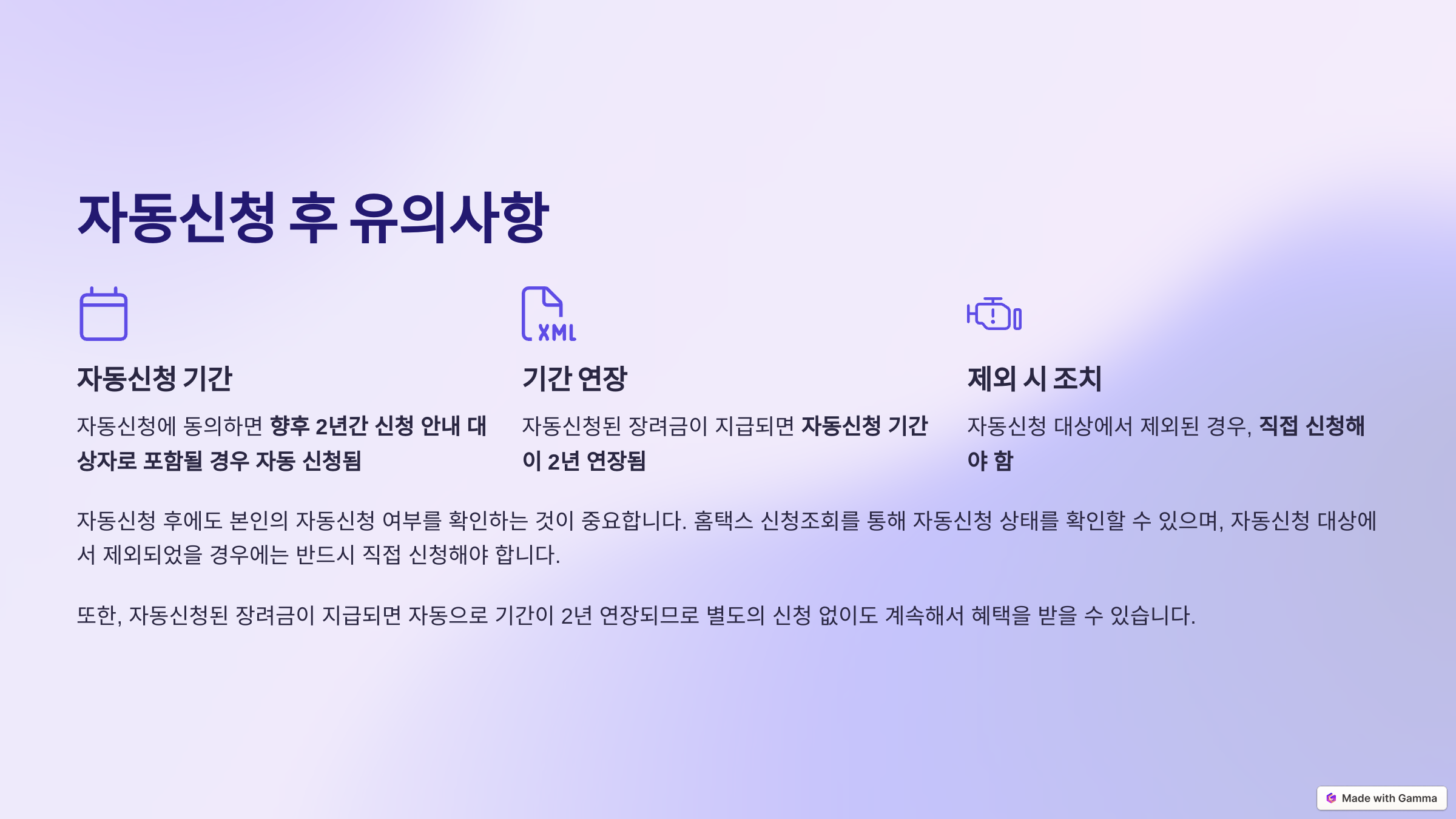 ✅ 자동신청된 장려금이 지급되면 자동신청 기간이 2년 연장됨
