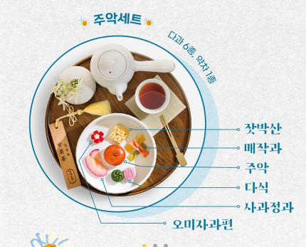 - 다과상에는 전통공예 이수자의 작품도 함께 제공되어, 미적 가치도 느낄 수 있습니다.