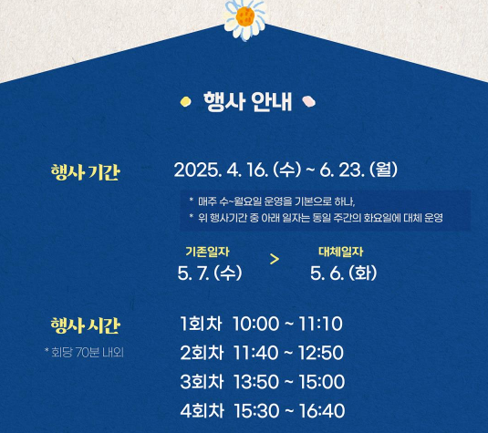 - 행사 기간: 2025년 4월 16일 ~ 6월 23일 (매주 화요일 휴무)