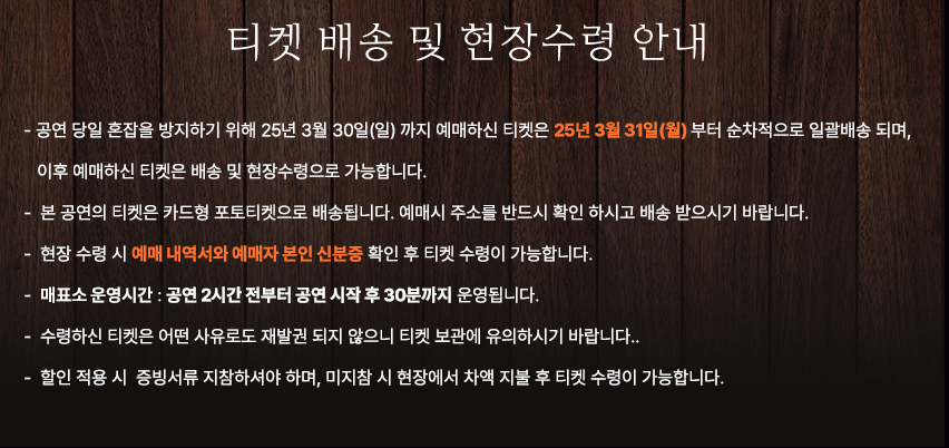 📱 예매한 티켓은 모바일 티켓으로 수령하며, 현장 발권 없이 입장
