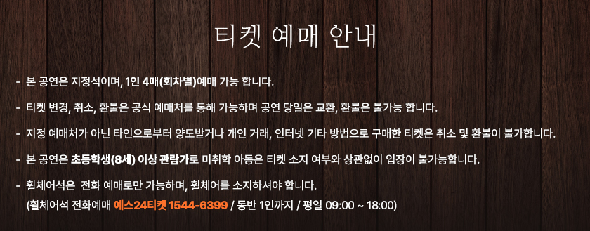- 휠체어석은 고객센터 전화 예매(예스24 고객센터: 1544-6399)