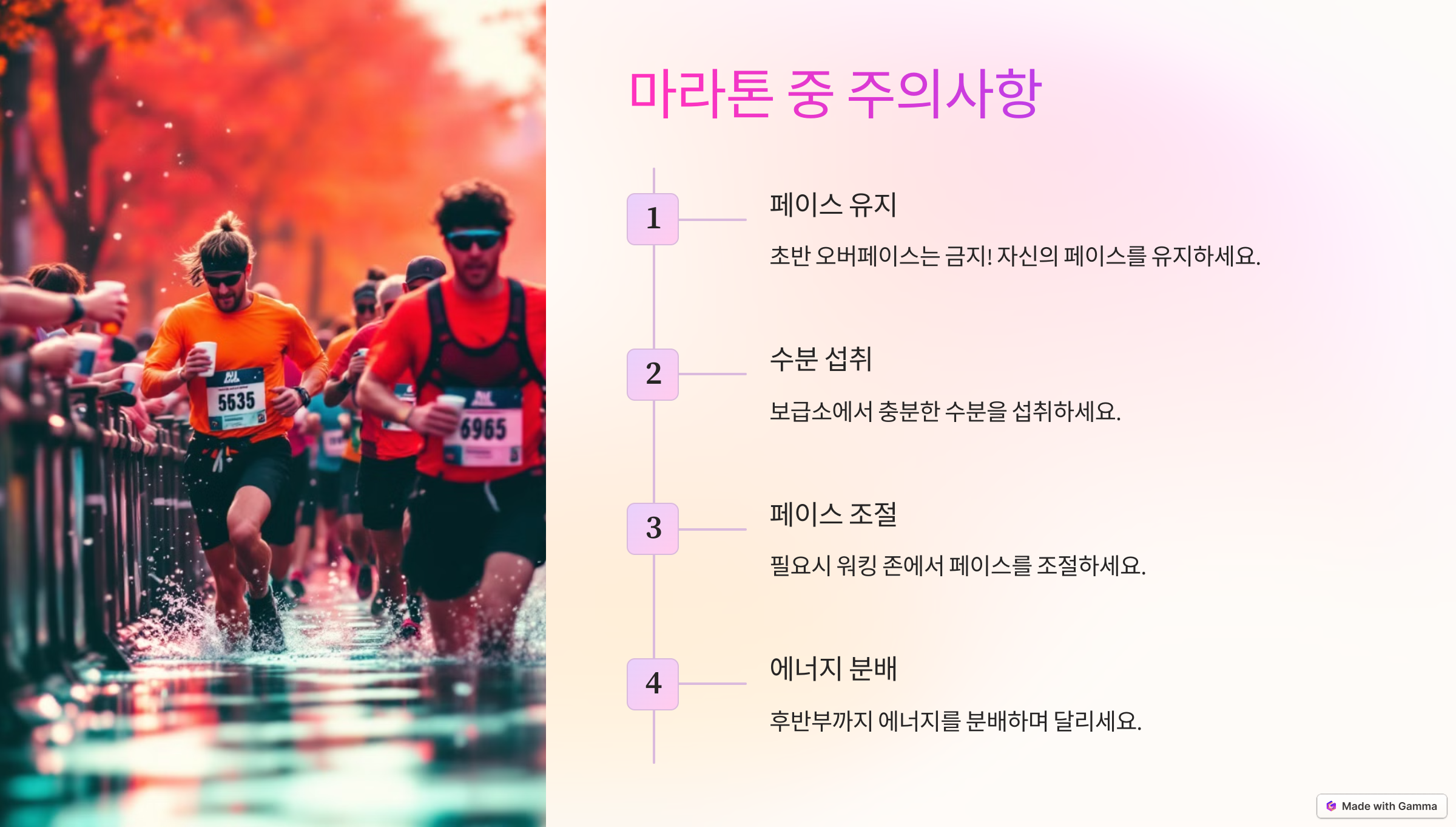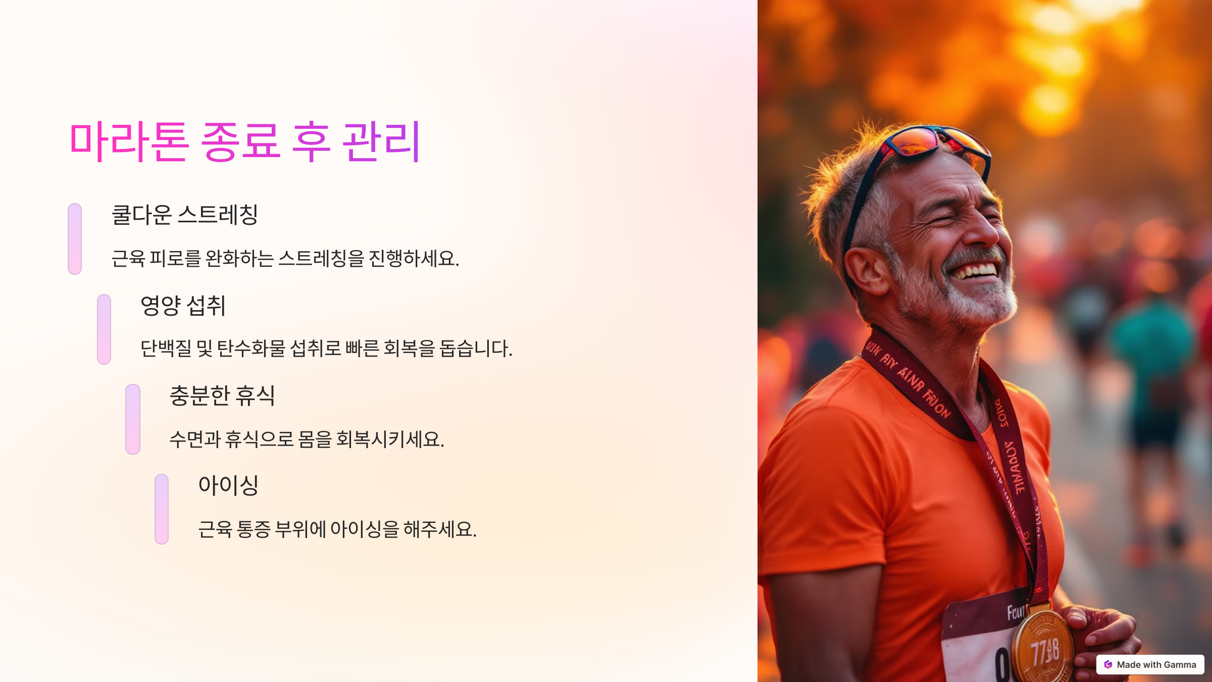 철저한 훈련과 체계적인 계획을 통해 목표한 마라톤을 완주하는 성취감을 경험해 보시길 바랍니다!