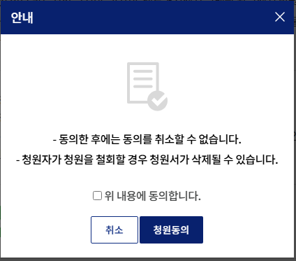 - 청원 페이지에서 우측 상단 또는 하단에 있는 [동의하기] 버튼을 클릭
