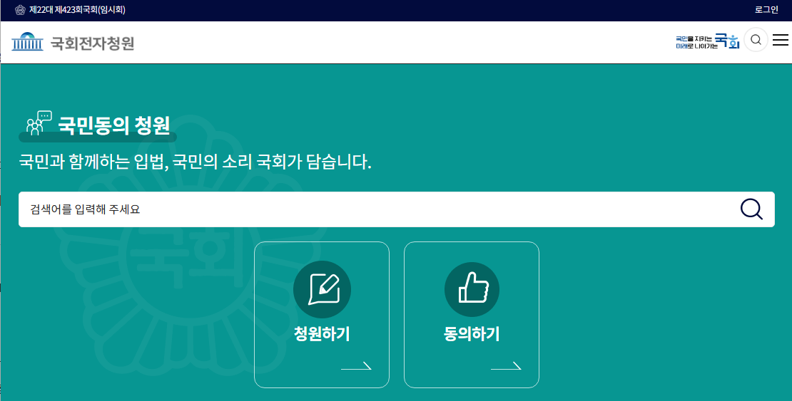 - 5만 명 이상 동의하면 국회가 반드시 검토해야 함