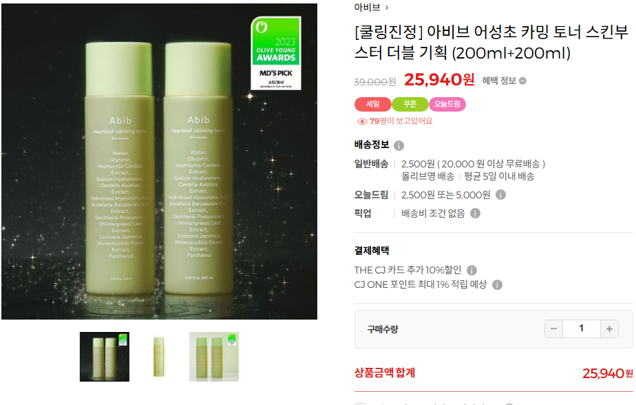 - 올리브영 앱 또는 온라인몰에서 이벤트 페이지 접속 후 랜덤 쿠폰 획득