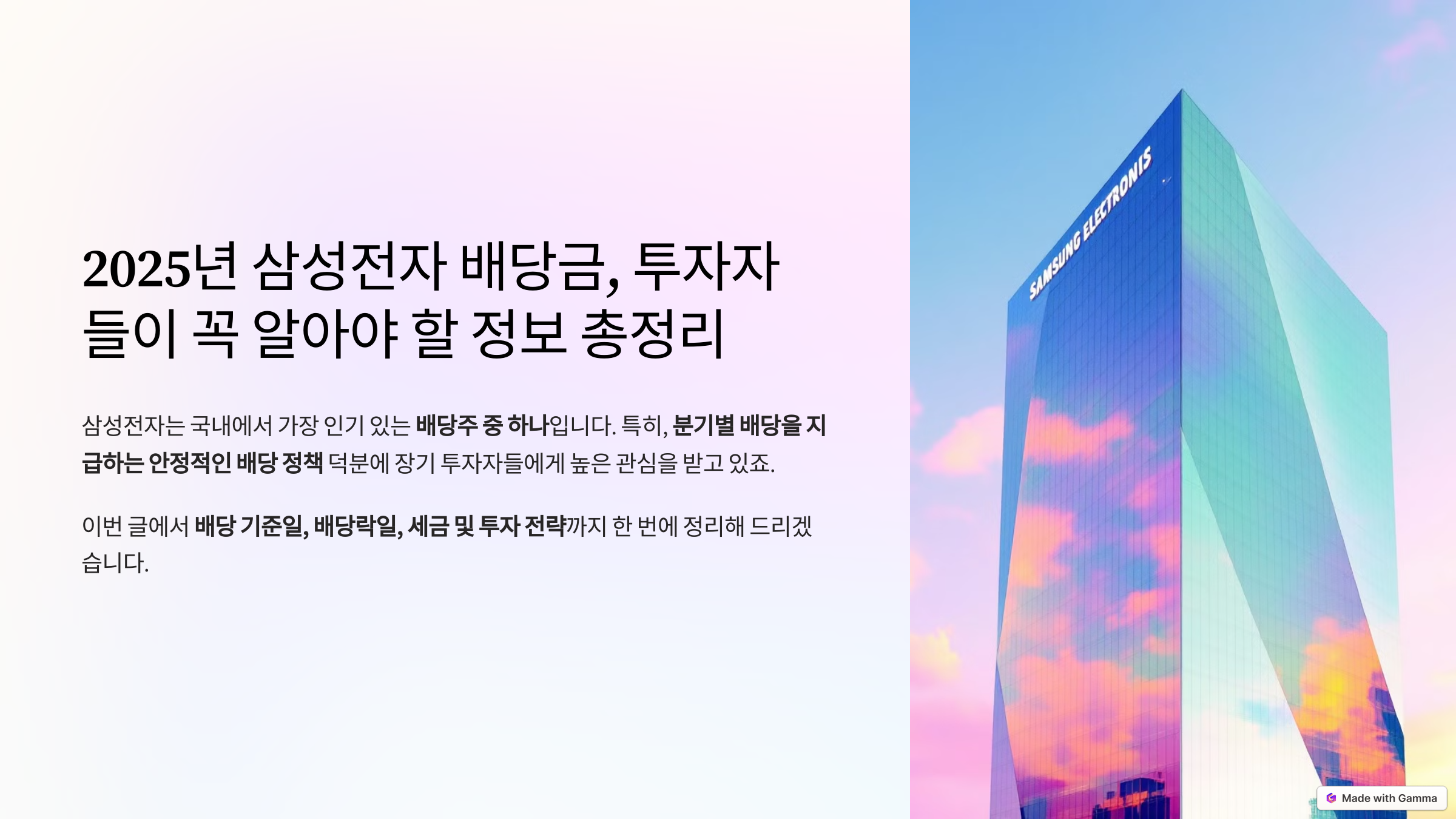 2025년에도 삼성전자는 안정적인 분기 배당을 유지할 가능성이 높습니다. 하지만 단순히 배당금만 확인하고 끝내기에는 부족합니다.