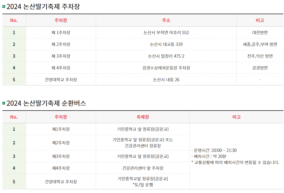 🚗 논산딸기축제 주차장 및 셔틀버스 정보