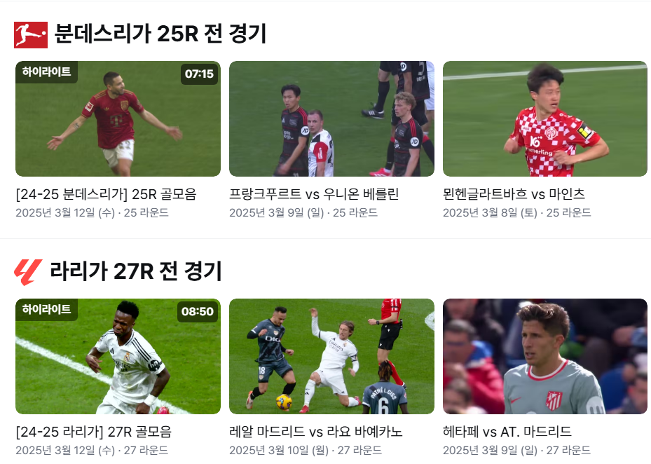 | 프리미어리그(EPL) 경기 | ✅ 가능 (풀경기, 하이라이트 제공) |