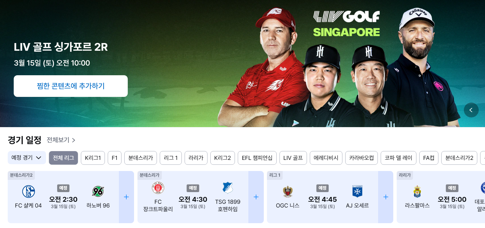 3️⃣ "스포츠" 카테고리에서 축구 경기 선택