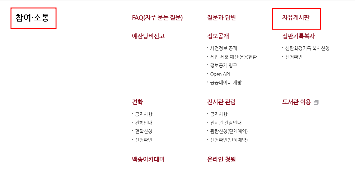 - 상단 메뉴에서 ‘국민참여’ 클릭