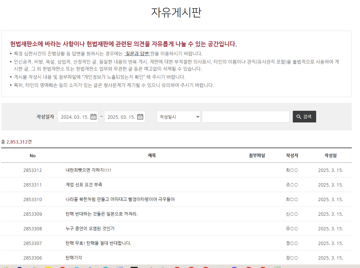 헌법재판소 자유게시판은 공식적인 의견 개진 공간이지만,